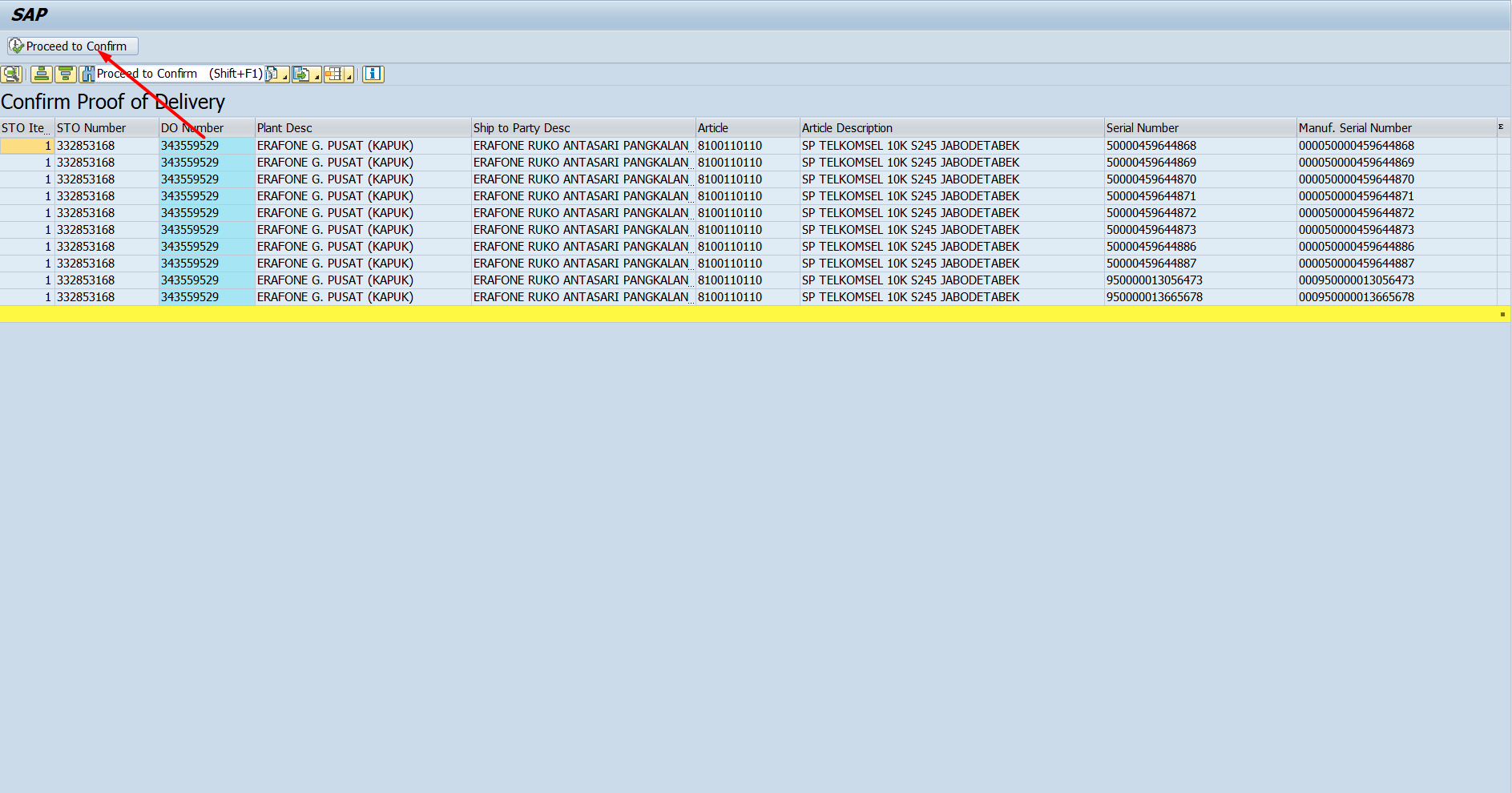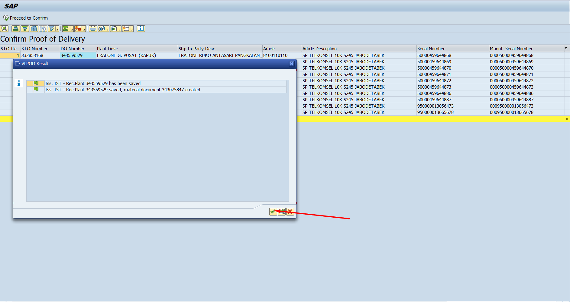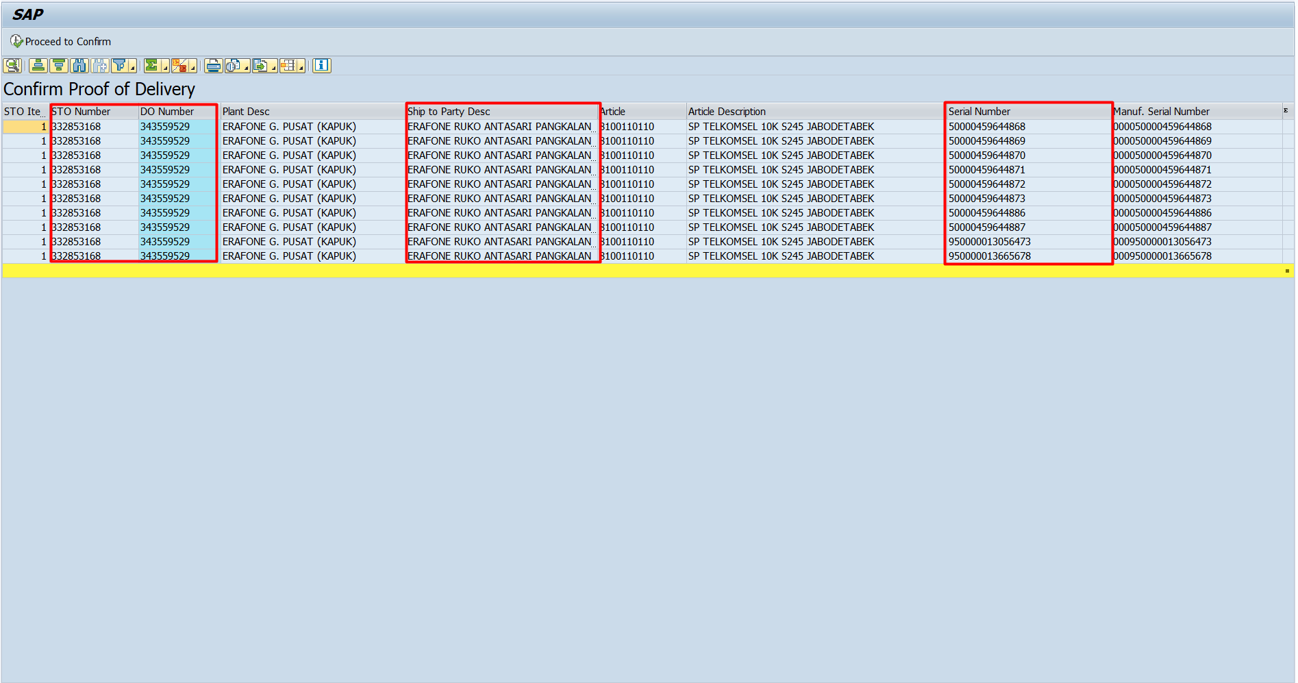 - Cocokkan kembali DO No./Ship To Party dan Serial Number nya. Agar tidak terjadi kesalahan Approve.
