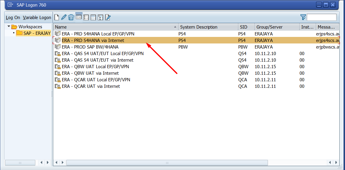 - Buka SAP GUI Launcher dan masukkan Username & Pass nya.