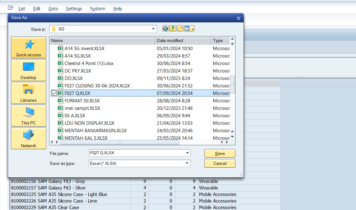6. Setelah itu item akan tersaring dan silahkan export ke Excel