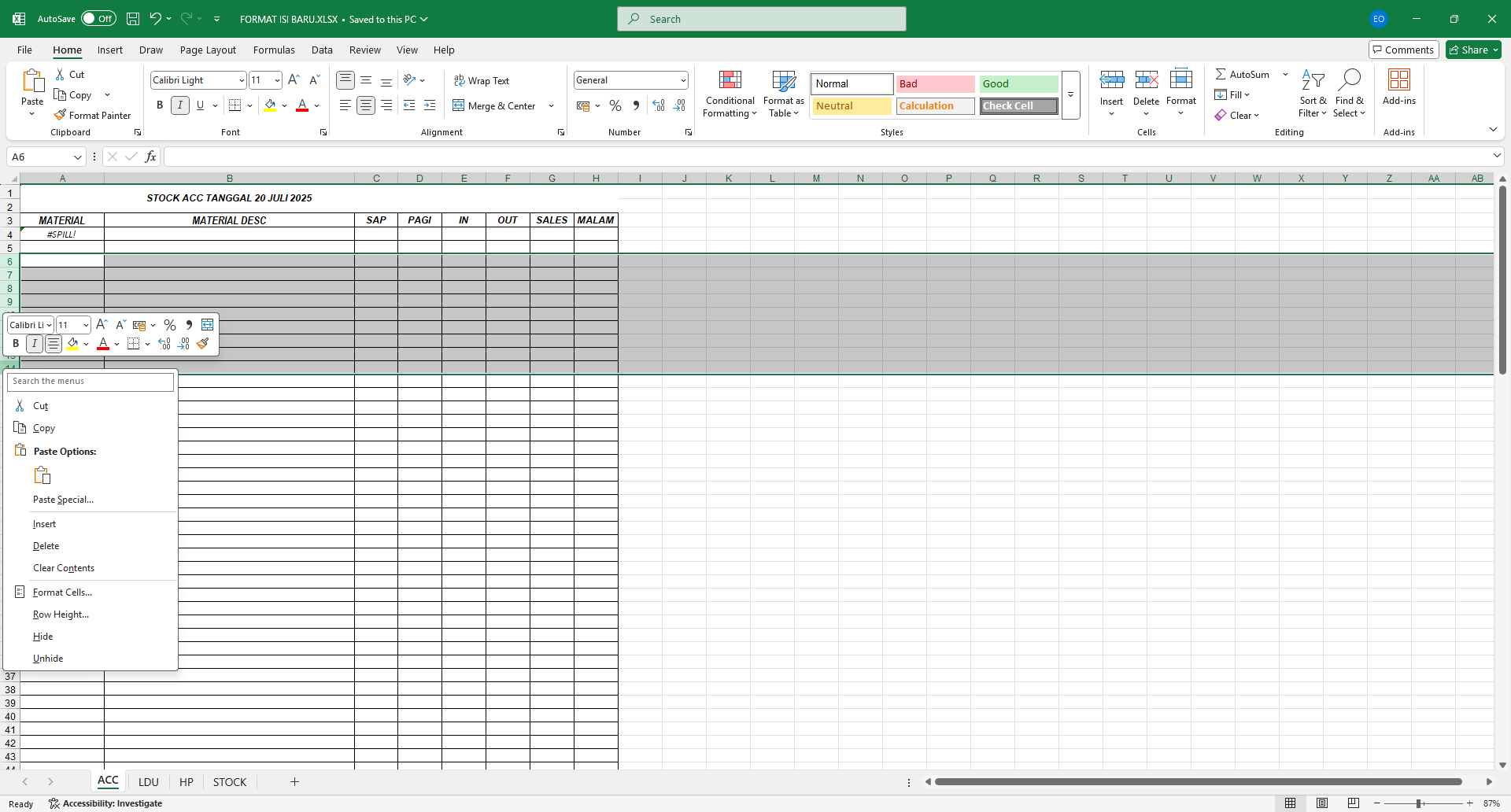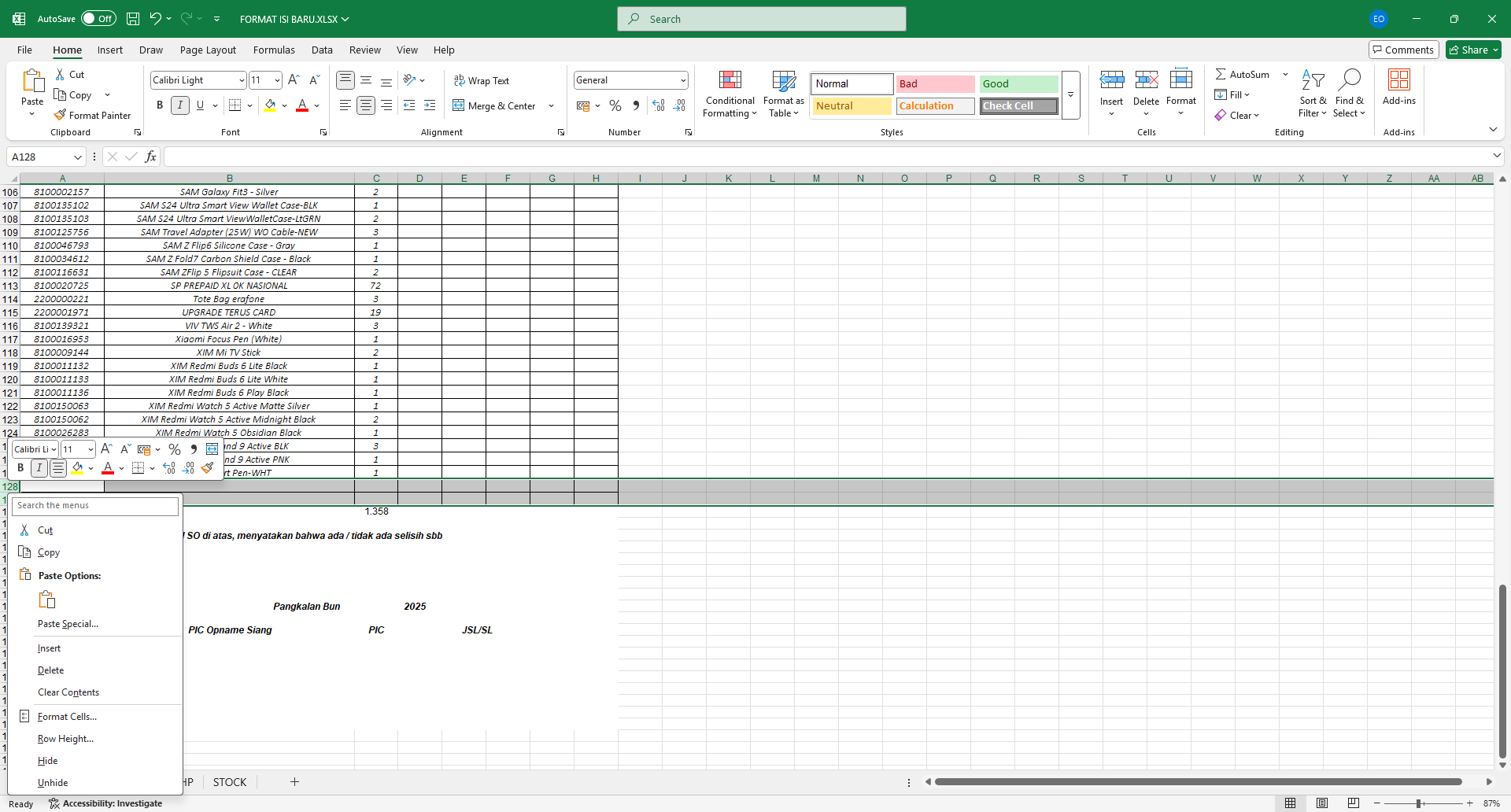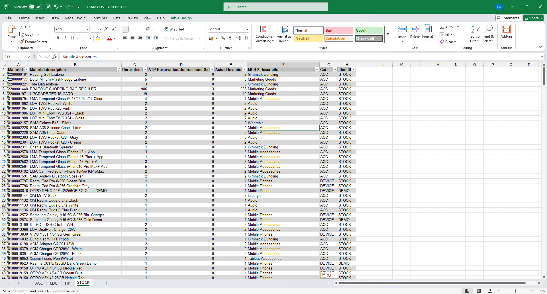 - Setelah itu stock akan langsung muncul di Sheet ACC, LDU dan HP secara Otomatis.